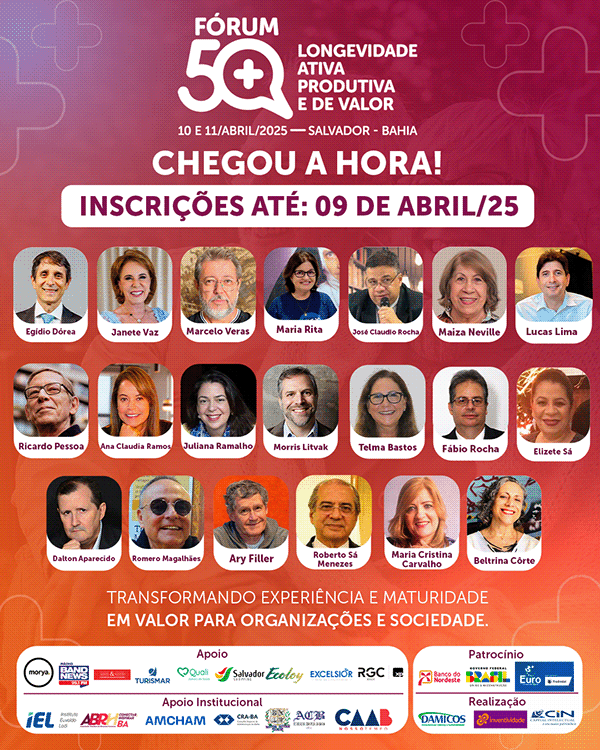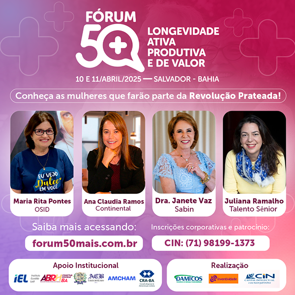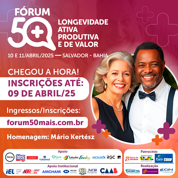 O Fórum 50+: Longevidade Ativa, Produtiva e de Valor foi um evento que ocorreu nos dias 10 e 11/04/2025 na FIEB, para discutir como será o futuro da nossa sociedade com a geração prateada (acima de 50 anos), e como as pessoas nessa idade podem ter uma vida longeva e de altíssimo valor.